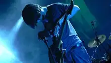 Radiohead's albums Kid A (2000) and Amnesiac (2001) marked a dramatic change in sound, incorporating influences from electronica, classical music, jazz and krautrock.[31] Greenwood employed a modular synthesiser to build the drum machine rhythm of "Idioteque",[32][33] and played ondes Martenot, an early electronic instrument similar to a theremin, on several tracks.[34]