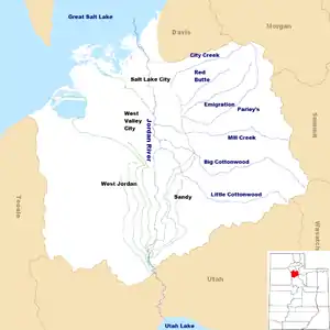 ![]() Map of the Jordan Subbasin and the location of Salt Lake County in Utah (inset) | |