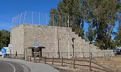 Many Basque immigrants came to Jordan Valley, starting around 1889 with the arrival of José Navarro and Antone Azcuenaga. Local oral history claims that before long, the Basques comprised around two thirds of the population of the town.[11] A pelota court, known as the Pelota Fronton, was built in 1915, and still stands as a historic landmark.[12] The Basques also constructed several sandstone buildings, including three boarding houses,[13] and (with the help of local Irish immigrants) the St. Bernard's Catholic Church, which can still be seen today.[14] Basque immigration to the area slowed with the passing of the Taylor Grazing Act of 1934, which favored cattle ranching over sheep, the Basques' preferred livestock.[6]