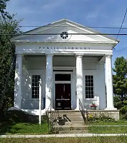 Jordanville Public Library is a historic community library building in Jordanville, Herkimer County, New York. Built in 1907–1908, it is a one-story, gable-roofed structure with clapboard siding that features an entrance portico with four Tuscan order columns. It was designed by New York City architects Trowbridge & Livingston in the Classical Revival style.[2]