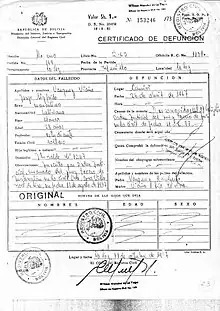 According to the Bolivian Army, Jorge Vazquez Viana was hospitalized with a stomach wound in Camiri on 22 April 1967 after being captured. There is no record of him after 30 April 1967 ... he just "disappeared". Cuban sources confirm that following his incarceration Jorge was tortured, murdered and his body thrown out of a helicopter above the Bolivian jungle. Six other bodies from Che Guevara's guerrillas can not be found to date, Jorge Vázquez Viañas is just one of these unaccountable deaths. He is survived by his German wife and two children. [1]