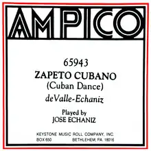 Label from an AMPICO piano roll, 1920s. "Cuban Dance" played by José Echániz.