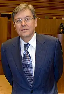 José Manuel Fernández Santiago (born 30 April 1958) is a Spanish politician and lawyer.[6] He is a member of the People's Party. He was the president of the Cortes of Castile and León from 2003 to 2011.[7] He is current deputy of the Cortes of Castile and León by Ávila since 1991. He was minister of health of the Junta of Castile and León from 1991 to 1999. He is a patron of the villar foundation. He was the first vice president of Junta of Castile and León for 3 years. He was the councilor for development in Junta of Castile and León.[8]