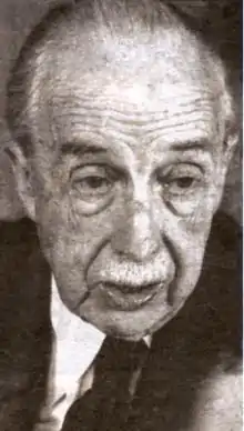 Aguirre was a procurador in Francisco Franco's Cortes from 1961 to 1976, first as a representative of the Association of Civil Engineers, and then as a direct appointee by Franco.[7] Aguirre denied having any political ambition, despite his seat in parliament, and turned down an offer by Franco to become Minister of Housing.[8] He chaired the transport committee of the Spanish Plan for Economic and Social Development, and was a member of the national economic council.[1] In the 1970s Franco named him vice-president of the highly political Fundamental Laws commission.[9] Aguirre was also a member of various international organizations including the European Concrete Committee, the Spanish committee of the World Energy Council and the European Cultural Foundation.[1]