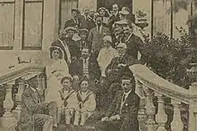 In 1870[19] Ampuero married María Milagro del Río y Aguero, the native of Madrid though related also to Burgos.[20] The couple settled in the family residence in Durango; they had 7 children, born in the 1870s and 1880s.[21] María del Carmen died in infancy and Antonio in his youth. José Joaquín succeeded his father in politics; as a Traditionalist in the 1910s and 1920s he served in the Biscay diputación, in the Congress and in the Senate, becoming also the local business tycoon. María de la Soledad married a Carlist politician, deputy mayor of Bilbao and senator Manuel Lezama Leguizamón.[22] Most of Ampuero's grandchildren engaged in business and held executive posts in various companies, though the best known one, Casilda Ampuero Gandarias, married general José Enrique Varela and supposedly influenced him towards Carlism.[23] Her daughter and the great-granddaughter to Ampuero Jáuregui, Casilda Varela Ampuero, married a guitar virtuoso, Paco de Lucía.[24] Some of Ampuero's great-great-grandchildren are known as business moguls and at times attract media attention.[25]