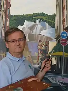 Born in Bilbao in 1954, Muro began painting from childhood. At age 22 he presented his first solo exhibition. At this time he was a pupil of the Basque painter José Luis Aldecoa,[1] but his technical training influenced his painting framed in pop art with a tendency towards hyperrealism. He combined painting with artistic forms such as documentary cinema and photography, while working as an engineer. This economic independence made his passion for painting not contaminated by commercial purposes and passing trends.[2][3]