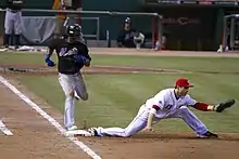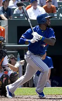 Reyes returned from the disabled list in August, and proceeded to become what some considered the spark for a run deprived Mets offense.[54] On September 22, Reyes hit a two-run home run in the bottom of the 9th inning in a pivotal game against the Philadelphia Phillies to even the score at 6–6. Asdrúbal Cabrera would later hit a three-run home run in the 11th inning to win, 9–8, propelling the Mets to a Wild Card berth. Reyes batted .267 with eight home runs and 24 RBIs in 2016.[55] After 60 games with the Mets in 2016, the club picked up its option on its contract with Reyes, keeping him with the team for the major league minimum salary in 2017.[56]
