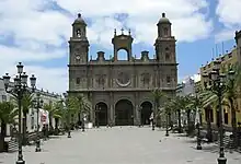 In Las Palmas Roca y Ponsa kept serving as lecturing canon by the cathedral and as catedrático by the local seminary. Another role he assumed was managing newly launched diocesan reviews.[16] He was gradually gaining recognition; in 1877 the Canary bishop José María Urquinaona nominated him head of the diocesan pilgrimage to Rome.[17] Roca was also assuming prestigious roles during local ceremonies.[18] His position in the Las Palmas hierarchy was enhanced with the 1879 arrival of the new bishop, José Proceso Pozuelo;[19] in 1881 Pozuelo nominated him to sort out the politically sensitive question of the local cemetery.[20] At the turn of the decades Roca launched a short-lived diocesan daily[21] and then a bi-weekly,[22] which he managed until 1888.[23] His militant articles aimed against the liberal regime cost him trial; in 1885 he was sentenced to living 3,5 years 25 km away from Las Palmas,[24] but it is not sure whether the sentence was enforced.[25] In 1890 Roca ascended to rectorship of Seminario de Canarias.[26]