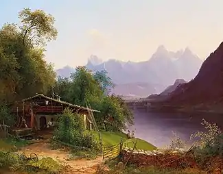 From 1817 to 1827, he studied at the Academy of Fine Arts, Vienna; specializing in landscapes, with motifs relating to the nationalistic concept of "Heimat". He travelled throughout Austria, Bavaria and Northern Italy. Many of his works were reproduced and distributed as steel engravings. In 1848, he became a member of the Academy and, in 1868, joined the Vienna Künstlerhaus.[2]