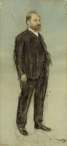 Josep Pascó i Mensa (Catalan pronunciation: [ʒuˈzɛp pəsˈko]) (1855–1910), was a painter, illustrator and designer from Catalonia, an autonomous community of Spain, mostly noted for book illustrations and theater set design. He was born in Sant Feliu de Llobregat in 1855 and died in Barcelona in 1910. He trained as a painter at the Escola de la Llotja with Simó Gómez and at the workshop of designer Josep Planella. He began his career as a mural painter but then switched to canvas, mostly landscapes. One of his most original paintings is that of the flag of the Cau Ferrat in Sitges.
