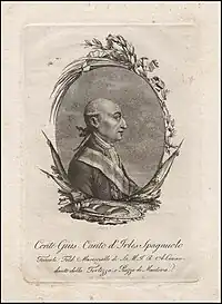 On 2 August, Wurmser asked Canto d'Irles for reinforcements, but only 2,000 men could be spared from the garrison.[17] On 6 August, an inspection found that the garrison counted only 10,788 men of whom only 7,455 were fit for combat. Canto d'Irles asked for a garrison of 20,000 men if the Austrian army retreated. He was authorized to borrow money from the city's inhabitants to pay the soldiers and to buy supplies. An engineer, Feldmarschall-Leutnant Franz von Lauer arrived to help repair the fortress. The garrison was reinforced by 7 infantry battalions and 1 cavalry squadron under Generalmajors Ferdinand Minkwitz and Leberecht Spiegel. This brought the garrison to 16,423 men, but only 12,224 were fit for service.[18] On 10 August 1796, Canto d'Irles was awarded the Commander's Cross of the Military Order of Maria Theresa.[5][3]