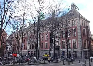 From 1900 to 1908, he worked with Jan Stuyt, at "De Violier", a Catholic-oriented architects' group. Under the influence of this group, and Stuyt, the public taste gradually changed from Neo-Gothic to Neo-Romanesque. He was also a member of several other associations, including Architectura et Amicitia, an offshoot of the artists' group, Arti et Amicitiae. Occasionally, he acted as a judge for their competitions, and served on committees; notably one delegated with helping to plan the Museumplein, a park with three museums and a concert hall.[2] For a brief time, he served as Chairman of a Catholic trade union known as "Gildebond".