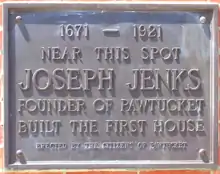 Jenckes built his home and forge on the south side of today's Main Street at East Avenue in Pawtucket. The forge was situated near the present-day Main Street Bridge where the river drops 30 feet. The site of Jenckes's home is marked by a plaque on the Pawtucket Boys Club Building at 53 East Avenue.[15][16]
