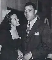 While training for a fight against Lee Ramage, Louis noticed a young female secretary for the black newspaper at the gym. After Ramage was defeated, the secretary, Marva Trotter, was invited to the celebration party at Chicago's Grand Hotel. Trotter later became Louis's first wife in 1935.[17]