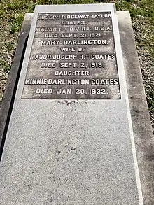 Joseph Ridgeway Taylor Coates (died September 21, 1921) was an American lawyer and politician from Pennsylvania who served as mayor of Chester, Pennsylvania, from 1887 to 1893. He was an officer in the Pennsylvania Reserves infantry division of the Union Army in the American Civil War and served in some of the key battles of the war.