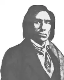 Joseph Renville's father, Joseph Rainville (also known as De Rainville) (1753–1806),[1] was a French Canadian canoeman and fur trader,[2][3] and his mother, Miniyuhe (Miniyuhewiŋ), was a kinswoman of the Mdewakanton Dakota chief Little Crow family. Renville's bicultural formative years probably included instruction by a Roman Catholic priest in Eastern Canada.[3][2] His wife, Mary Tokanne (Tokahewiŋ) Renville, also a kinswoman of Big Thunder (Wakiŋyaŋtaŋka) Little Crow II, was an early Christian convert.