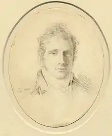 Slater worked as a portraitist in London, exhibiting his first picture at the Royal Academy in 1803, where his portraits were exhibited regularly between 1806 and 1833. Since 1813 he was a portraitist at the Grillion's Club in London.[2] Many of Joseph Slater's portraits were published as lithographs by his brother Isaac Wane Slater. They both worked since 1805 in the John Bacon's studio at 17 Newman Street. Later the brothers moved down in their own studio with a shop at 70 Newman Street.[3]