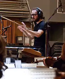 ![]() Trapanese conducting his score for Disney's Lady and the Tramp at Sony's Barbra Streisand Scoring Stage | |