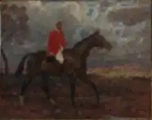 He died in March 1922, aged only 49, from a heart-attack, whilst out hunting beside two of his sons.[26] They were with the Warwickshire Foxhounds, at Upper Quinton, close to his new mansion. He died having held his title for less than two months. He was buried at his nearby manor of Offchurch, in his hunting apparel. His estate was sworn for probate at exactly one million pounds. A portrait of Joseph Watson mounted on a hunter was painted by Lynwood Palmer, together with a painting by the same artist of his racehorse Love-in-Idleness.[60]