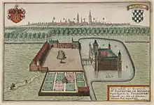 Tillegem Castle, the van Aertrycke family seat, in the first half of the 17th century - Image from Flandria Illustrata (1641)