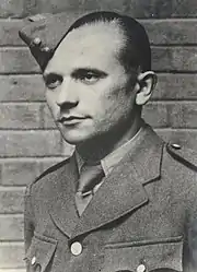 Following France's surrender, together with remnants of Czechoslovak troops, he evacuated (12 July 1940) to Great Britain where he was trained as a paratrooper. He became a rotmistr (approx. UK staff sergeant) in rank. The Free Czechoslovaks, as he and other self-exiled Czechoslovaks were called, were stationed at Cholmondeley Castle near Malpas in Cheshire.[1]