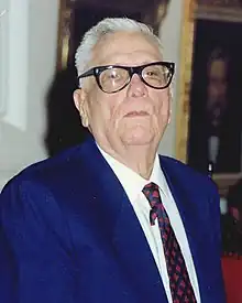 Upon his return in 1958, he devoted himself to teaching and research at the Santa María University and published several books on economics, politics, philosophy of law and twenty volumes of History of Contemporary Political Venezuela, where he analyzes the events in which he participated.[3] In 1977 he was elected Rector of the Universidad Santa María.