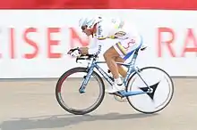 ![]() López riding in the time trial at the 2009 UCI Road World Championships | |