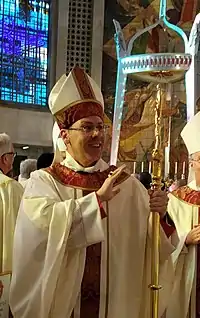 On September 18, 2018, Pope Francis appointed Betancourt as titular bishop of Curzola and auxiliary bishop of the Archdiocese of Hartford.[3][4][5] He was consecrated on October 18, 2018, at the Cathedral of St. Joseph in Hartford by Archbishop Leonard Blair, with Archbishop Timothy Broglio and Bishop Andrew H. Cozzens as co-consecrators.[1][6]