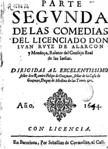 Juan Ruiz de Alarcón (c. 1581[1] – 4 August 1639) was a New Spain-born Spanish writer of the Golden Age who cultivated different variants of dramaturgy. His works include the comedy La verdad sospechosa (es), which is considered a masterpiece of Latin American Baroque theater.