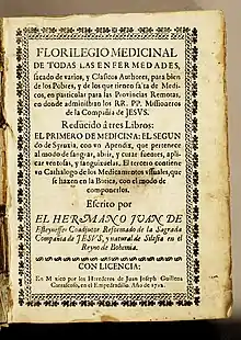 Juan de Esteyneffer (March 4, 1664 – 1716) was a Moravian German lay Jesuit missionary sent to the New World. He is known for his 1711 work Florilegio Medicinal, which compiled a combination of New World traditional medicine, European materia medica, and 18th-century European medical diagnosis.[1]