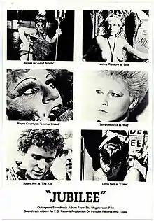 Jubilee is a 1978 British cult film directed by Derek Jarman. It stars Jenny Runacre, Ian Charleson, Nell Campbell, Hermine Demoriane and a host of punk rockers. The title refers to the Silver Jubilee of Elizabeth II in 1977.[4]