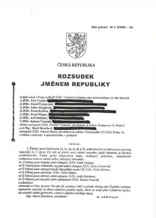 - ↑ Richter, Jan (10 Jan 2011). "Justice Ministry releases list of ex-communists among Czech judges and prosecutors". Radio Prague. Retrieved 7 January 2013.