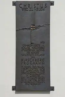The Jugendbund Neudeutschland (Youth Federation New Germany) is a German Catholic organization, founded in 1919 following a recommendation by Felix von Hartmann, the Archbishop of Cologne.[1] During the Weimar Republic, it was closely affiliated with the Catholic Centre Party. The organisation opposed Nazism and was banned by the Nazi regime in 1933. After World War II, it was re-established as Bund Neudeutschland and enlarged, comprising a wing for secondary school students, another for university students, and a third one for those who were no longer students, but wished to continue in the movement. The student wings then merged with the parallel girls movement Heliand and formed the Katholische Studierende Jugend, which is affiliated with the International Young Christian Students.