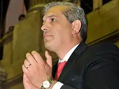 He returned to Chacabuco in 1994 and was elected intendente (mayor) the following year on the ruling Justicialist Party (Peronist) ticket. Domínguez was elected to the Lower House of Congress in 1999, but forfeited his seat following an offer for the post of provincial Public Works Minister by Ruckauf, who had been elected Governor of Buenos Aires. He was influential in the governor's 2001 decision to rescind the province's water service concession granted several years earlier to Azurix, a local Enron subsidiary.[5] The precipitous resignation of President Fernando de la Rúa at the end of 2001 and his eventual replacement by a leading Peronist figure, Eduardo Duhalde, brought Domínguez to the Casa Rosada as the President's Assistant Chief of Staff. He served mainly in a parliamentary liaison capacity in this post, and the election of Néstor Kirchner to the Presidency in 2003 took Domínguez to an important Defense Ministry post, where he served as liaison between the Argentine Military and the remaining, civilian arms of the Argentine Government.[4][6]