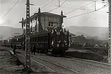 Elorza's tenure as head of the provincial self-government was not marked by overtly political stand. Sporadically he was taking part in Traditionalist rallies like the one in Zumarraga.[76] However, in early 1920 he signed an ultimative letter, addressed to claimant Don Jaime, which demanded setup of an elected Carlist executive; with no response from the claimant, most signatories resigned their posts.[77] As president of the Diputación he was involved in usual administrative tasks like maintenance and development of transport facilities;[78] his most lasting achievement was completion of Ferrocarril del Urola, the railway line launched in 1920 and operated until the 1980s.[79] The thread which during the late 1910s and early 1920s was increasingly gaining prominence was his activity in Sociedad de Estudios Vascos; as Gipuzkoan president he supported the organization – which he also presided – financially and politically. This stand led to growing conflict with the Biscay self-government, anxious about perceived Elorza's pro-nationalist turn.[80] The Vizcainos started to withdraw from common projects; in the early 1920s Elorza came under fire also for financial misfortunes suffered by joint inter-provincial enterprises, especially for the failure of Banco Vasco.[81]