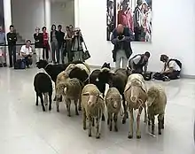 Julia Kissina is also known as a visual artist, having devoted herself to conceptual photography in the 1990s. In 2000, she herded an actual flock of sheep into the Museum of Modern Art in Frankfurt as part of a performance. She also co-curated the Art & Crime Festival at the Hebbel Theater, Berlin, in 2003 and performed in a German prison. In 2006 she created The Dead Artist's Society, which held séances to conduct "Dialogues with Classics" such as Duchamp and Malevich.