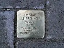 Since 2012 a Stolperstein remembers Salinger in front of her former residence at Bayreuther Straße 14, Dresden. A street in Dresdner Neustadt is named in her honour.[3]