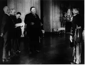 General Leonard Wood later said in referring to the incident that Julien's action warranted "either a court martial or a Medal of Honor." Wood also overrode the recommendations of the Mobile Army Division of the General Staff as well as the Army's Judge Advocate General, who recommended that Gaujot was ineligible for the Medal of Honor due to the legal requirement that the qualifying act be "performed in action."[3] That Medal was approved November 23, 1912 and awarded by President William Howard Taft at the White House the following month, in one of the earliest White House presentations of the Medal of Honor. Julien served in the United States Army from 1898 to 1934 and participated in five major engagements: the Spanish–American War, Philippine–American War, Cuban Pacification, Mexican Border, and World War I.