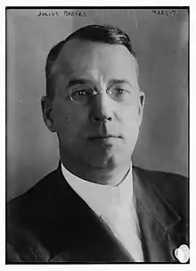 Julius H. Barnes was born on February 2, 1873, in Little Rock, Arkansas. Barnes was featured on the May 5, 1930 cover of TIME Magazine.[2] Barnes died on April 17, 1959, aged 86, in Duluth, Minnesota and is buried in Forest Hill Cemetery.