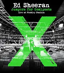 Jumpers for Goalposts: Live at Wembley Stadium is a home video by English singer-songwriter Ed Sheeran, released on Blu-ray on 13 November 2015.[1] It features the footage taken from Sheeran's x Tour, when he became the first solo artist to take the stage (without a band) at Wembley Stadium in London and played across three sold out nights to a crowd of 240,000 people.[1] Jumpers for Goalposts: Live at Wembley Stadium features performances of hits like "The A Team", "Sing" or "Thinking Out Loud".[1] Sir Elton John duets with Sheeran on two songs.[1]