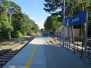 Jurata railway station is a railway stop serving the town of Jurata, in the Pomeranian Voivodeship, Poland. The station is located on the Reda–Hel railway. The train services are operated by Przewozy Regionalne.