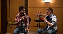 Young hosted a short-lived YouTube series called TalkingHead TV in which he interviewed guests from around the world on the topics of tech and pop culture,[10] including an early interview with magician and future podcast collaborator Brian Brushwood.[11] Young met Brushwood in Florida while interviewing him for iTricks.com. Soon after, Young became a regular guest on Brushwood's BBLiveShow podcast.[6] Young and Brushwood were selected by Leo Laporte's TWiT network to co-host a late-night comedy show, NSFW. NSFW premiered on November 24, 2009.[12]