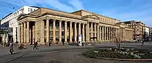 The Königsbau is one of the formative buildings of Stuttgart's Schlossplatz. It forms the north-west end of the square and is mainly home to shops and cafés. Since April 2006, the Königsbau-Passagen, a 45,000 square meter retail and commercial building, has been attached to the rear of the Königsbau.