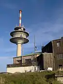 The telecommunication tower (a 'standard' tower; 100 m or 330 ft high) on the summit of the Köterberg was built in 1971 by the Deutsche Bundespost and handles wireless telephone traffic.