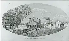 Køge station opened on 4 October 1870 as the Zealand Railway Company (Danish: Det Sjællandske Jernbaneselskab) opened the original Zealand South Line, which connected Copenhagen with South Zealand via Roskilde, Køge and Næstved.[2] In 1880 the railway line was taken over by the Danish state, and in 1885 became part of the national railway company DSB.