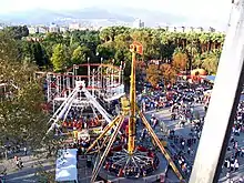The debris in the 360,000 m2 (3,900,000 sq ft)-area, which was ruined by the great fire of Smyrna, started to be cleaned in the second half of 1934 and the foundation of Kültürpark was laid on January 1, 1936.[5][6] Before the fire, there was an Armenian quarter in this area.[7] Kültürpark was opened to the public on September 1, 1936 with the 6th İzmir International Fair, inaugurated by Prime Minister İsmet İnönü.[5][6] In 1937, İzmir Parachute Tower was built in the park.[6] In 1938, İzmir Zoo and Vakıflar Pavilion and Clock Tower were opened.[6] In 1939, the park was expanded for 60,000 m2 (650,000 sq ft) southwards and has reached 420,000 m2 (4,500,000 sq ft) in size.[6][8] In 1951, the İzmir Archaeological Museum moved into the park where it was active until 1984.[6] In September 1952, the İzmir Art and Sculpture Museum was opened in the park and moved to its new building, which was built outside the park in 1973.[9] In 2004, İzmir Museum of History and Art was established inside the park.[10] With the opening of İzmir Wildlife Park in 2008, the zoo in the park was closed and the animals were moved to the new area.[6][11] In August 2009, an underground car park with 594 vehicle capacity was put into service.[12] In June 2015, free Wi-Fi was made available in the park.[13] All the fairs in the city were organized in Kültürpark before Fuar İzmir was built in 2015 in Gaziemir. Today only İzmir International Fair and İzmir Book Fair are held in the park.[14] In 2017, the Kültürpark Cup tennis tournament was held for the first time.[15]