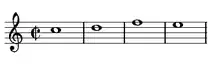 The Credo of this mass features the "Do-Re-Fa-Mi" motif from the hymn Lucis creator,[1] which Mozart later used as the main theme to the final of his Jupiter Symphony.[2] Due to its repetition of this theme, it is classed as a Credo Mass;[3] it is often known as the Kleine (small) Credo Mass to distinguish it from the Great Credo Mass, K. 257.[4]