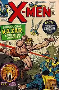 Kevin Plunder, also known as Ka-Zar,[lower-alpha 1] is a superhero appearing in American comic books published by Marvel Comics. Created by writer Stan Lee and artist Jack Kirby, the character first appeared in The X-Men #10 (March 1965).[3] Kevin Plunder is the second character to use the codename Ka-Zar.