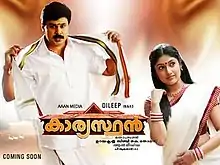 Kaaryasthan (transl.The Caretaker) is a 2010 Malayalam-language comedy drama film written by the duo Udayakrishna-Siby K. Thomas and directed by debutant Thomson K. Thomas. It stars Dileep, Siddique, Madhu and Suraj Venjaramoodu. It was Dileep's 100th feature film.[1][2][3] Akhila, a noted television anchor and dancer, debuted as an actress through this film.[4] The film is an unofficial remake of 2000 Telugu film Kalisundam Raa with minor changes in the plot. In the film, Krishnanunni tries to settle the dispute between two feuding families. In the process of doing so, he ends up falling in love with Sreebala, who belongs to one of the families.