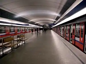 Metro Kabaty is the southern terminus of Line M1 of the Warsaw Metro, located in the Kabaty neighbourhood of the Ursynów district in the south of Warsaw, at the end of Aleja Komisji Edukacji Narodowej, the main artery of Ursynów. Tracks continue beyond the station, where they rise to surface level and go into the depot. The station is close to several bus stops. The Kabaty Forest is nearby.[2]